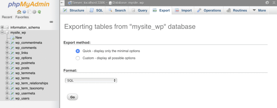 Dosya indirme işlemi tamamlandığında Cpanel üzerinden veritabanı bölümüne gidip ilgili WordPress sitenize ait veritabanını SQL uzantısında dışa aktarıyoruz. Burada eğer bir tabloya tıklayıp daha sonra dışa aktar seçerseniz sadece seçtiğiniz tablo dışarı aktarılıyor olacak. Bu sebeple dikkatli olup tüm tabloları dışarı aktardığınızdan emin olun.